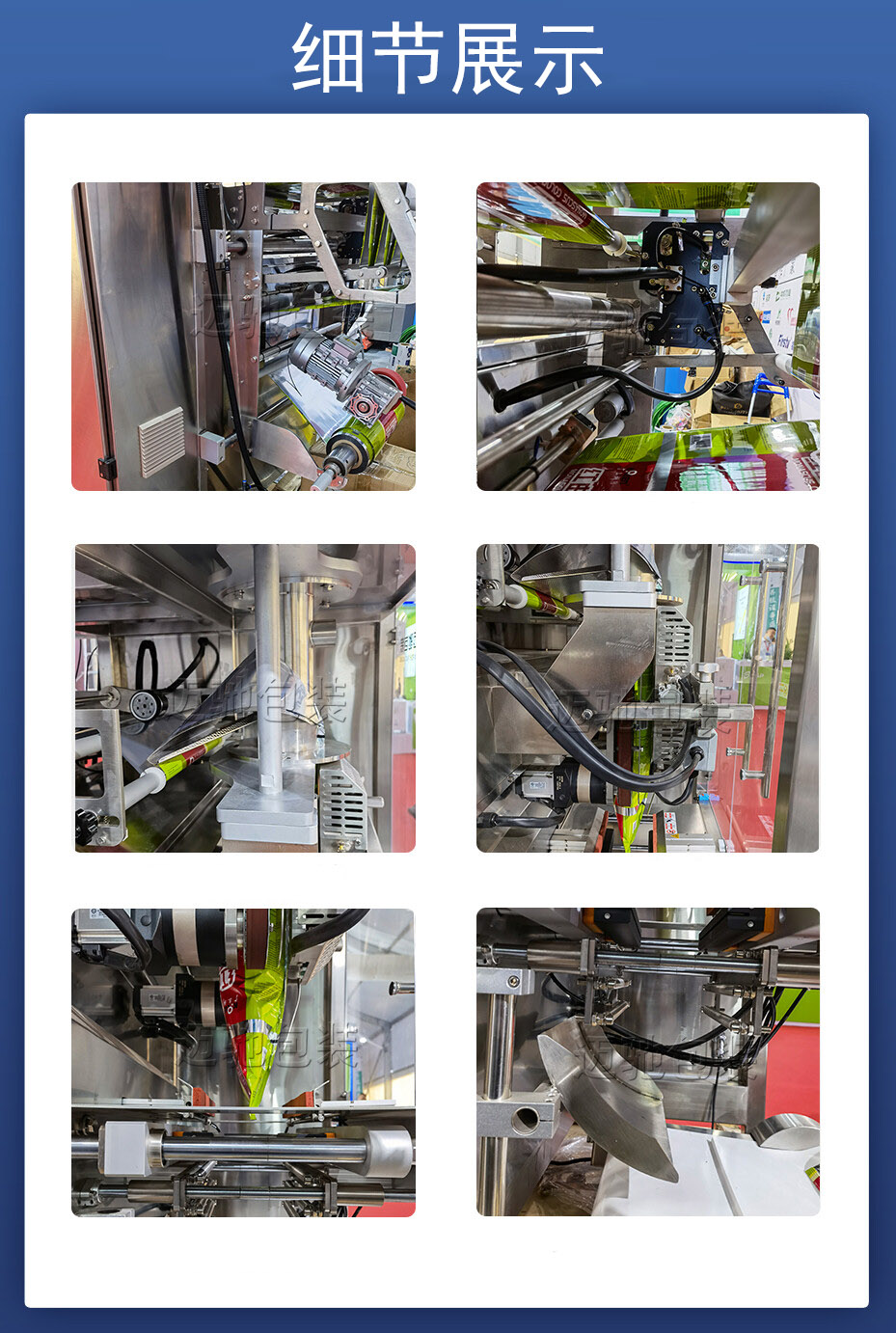 4、全自動包裝,從送料、包裝到打印,產品生產過程計量精度高,由(yóu)於食品包裝(zhuāng)機是(shì)采用了步進電機,運轉也安靜,動作穩定,壽命也(yě)長,保證了食品的衛生質量,也確保了包裝食品的安全。